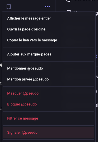 1. Dans un premier temps, nous vous invitons à signaler le compte en question ou le(s) message(s) en question. L'équipe de modération agira dès que possible.